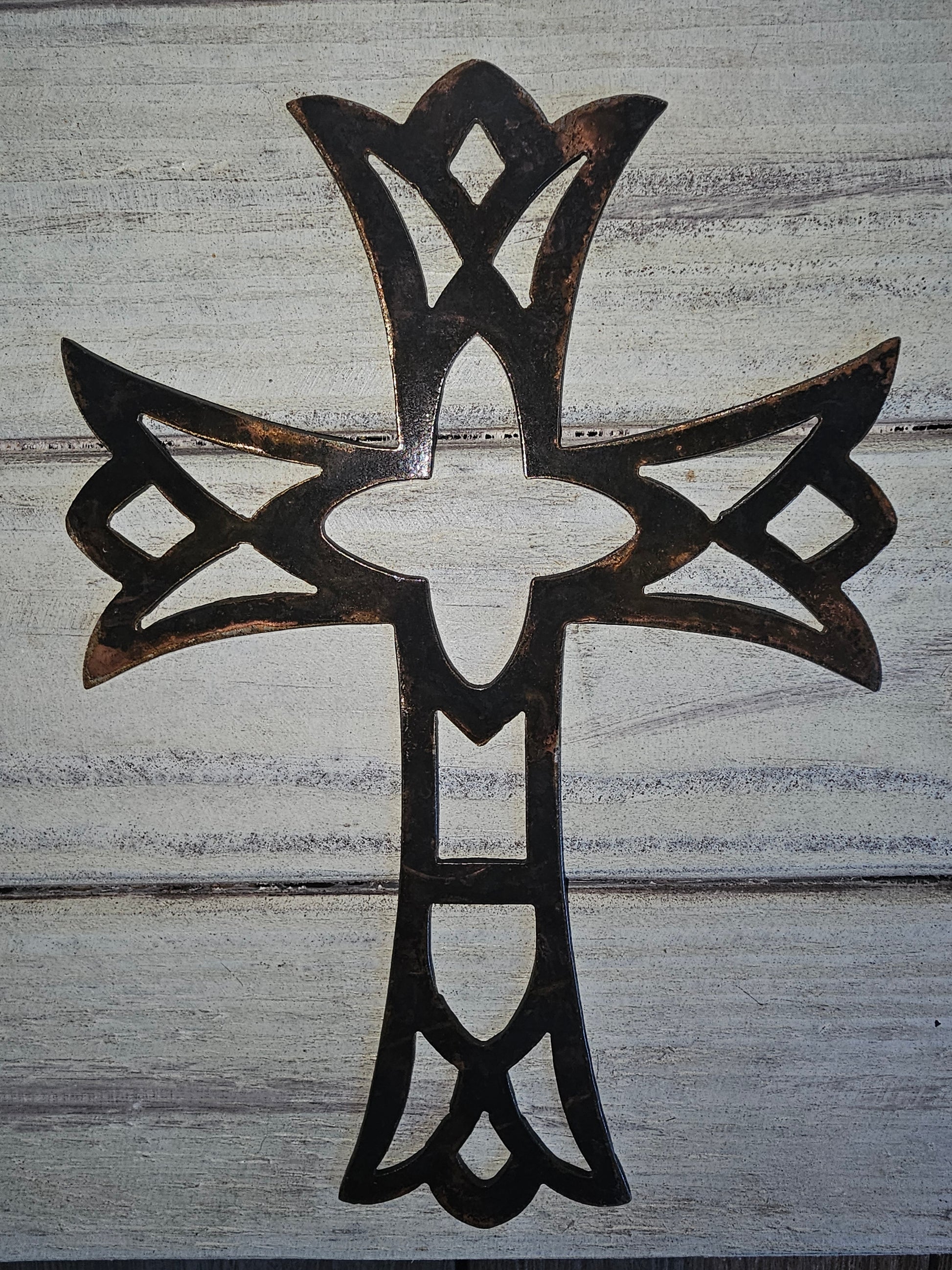 16-gauge Carbon Steel with a copper patina finish with a clear coat.